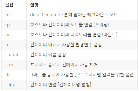--name : 컨테이너에 읽기 어려운 ID 대신 쉬운 이름을 부여한다.