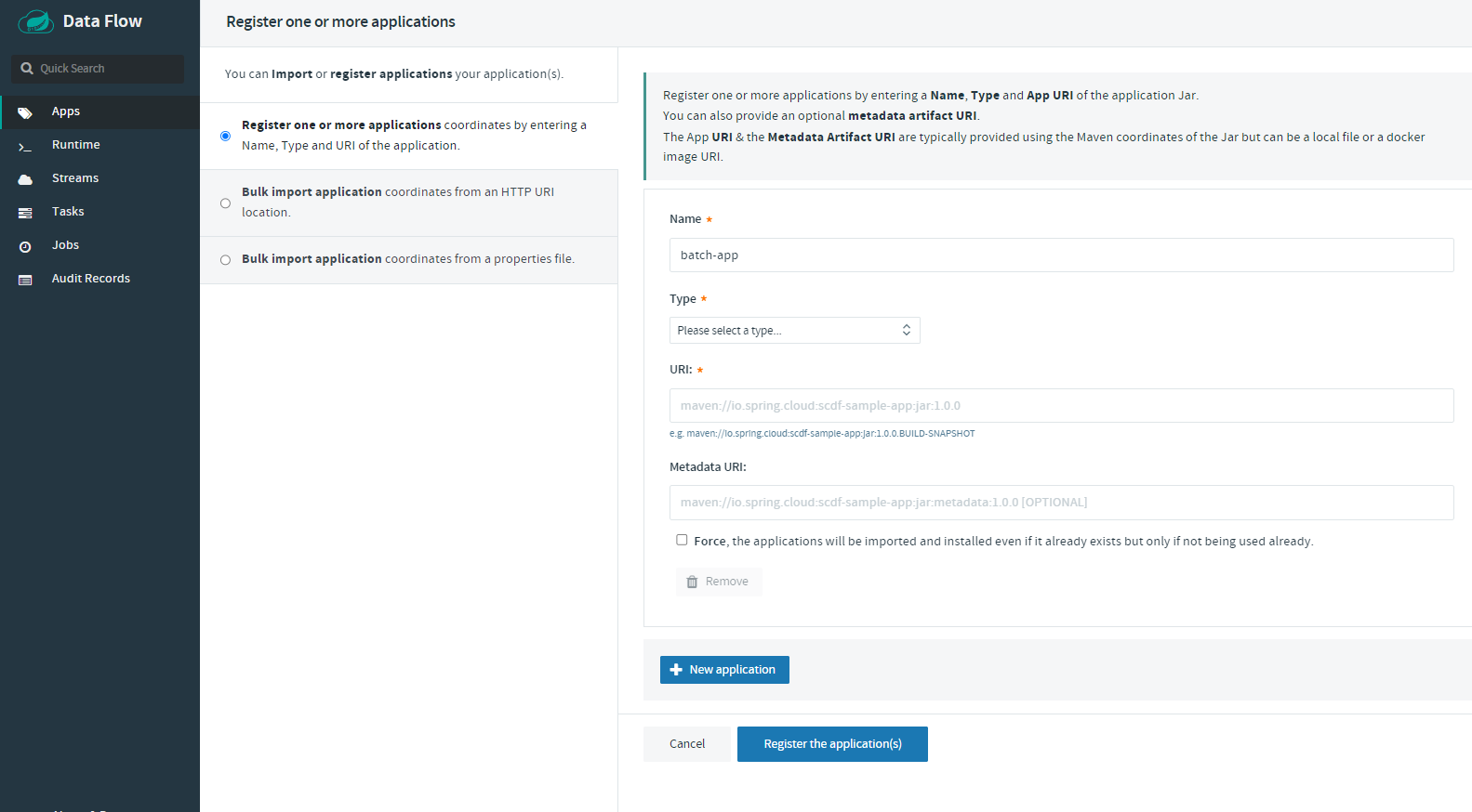Spring Cloud Data Flow(SCDF) 서버에 배치 잡 애플리케이션을 등록하려면 다음과 같은 단계를 따를 수 있다.
